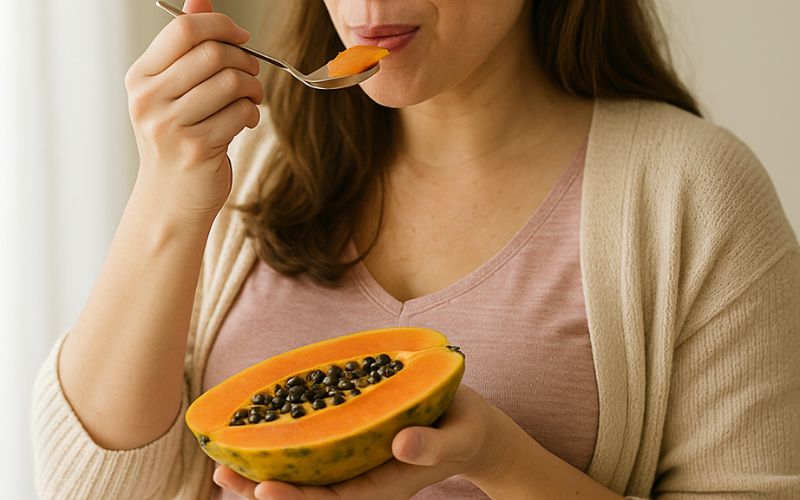 Si la papaye est bien mûre, elle peut tout à fait être intégrée à une alimentation équilibrée. Comme pour de nombreux aliments, la prudence peut être justifiée dans certains contextes particuliers (antécédents médicaux, grossesse à risque), mais il n’existe pas de raison générale de l’exclure.